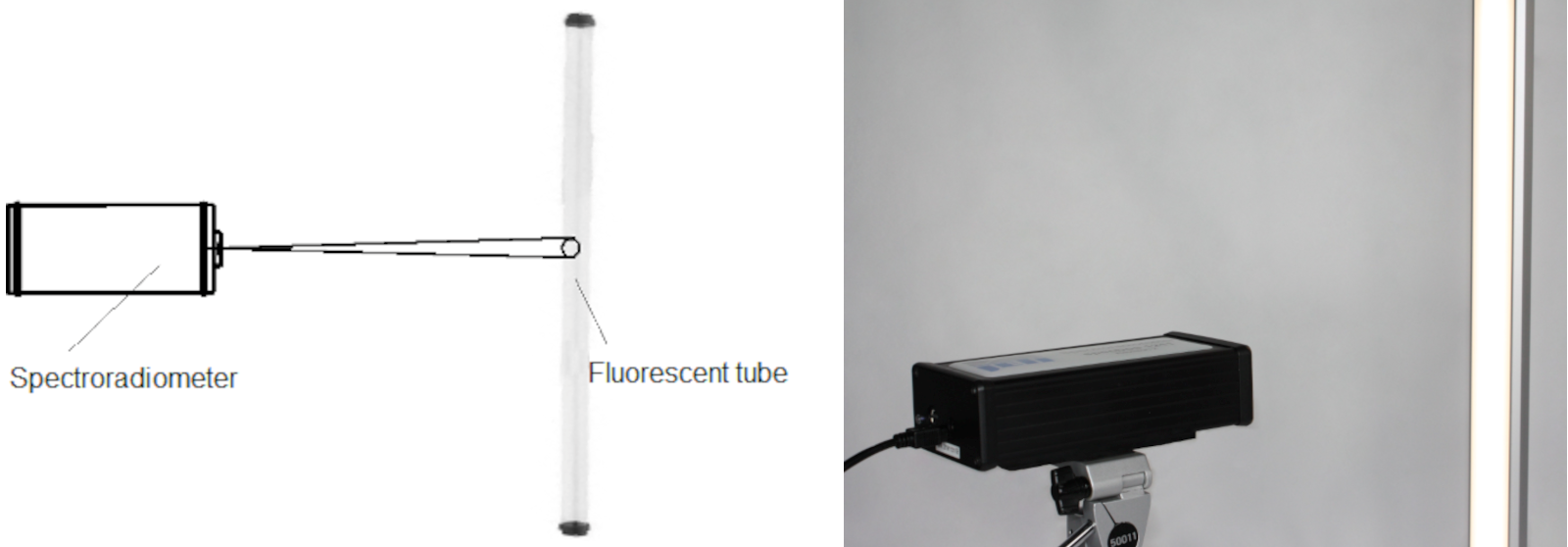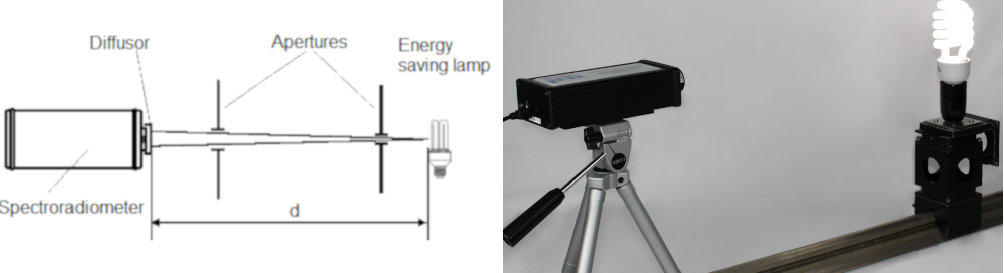 The following measuring set ups can be used to characterize energy saving lamps and conventional fluorescent tubes: