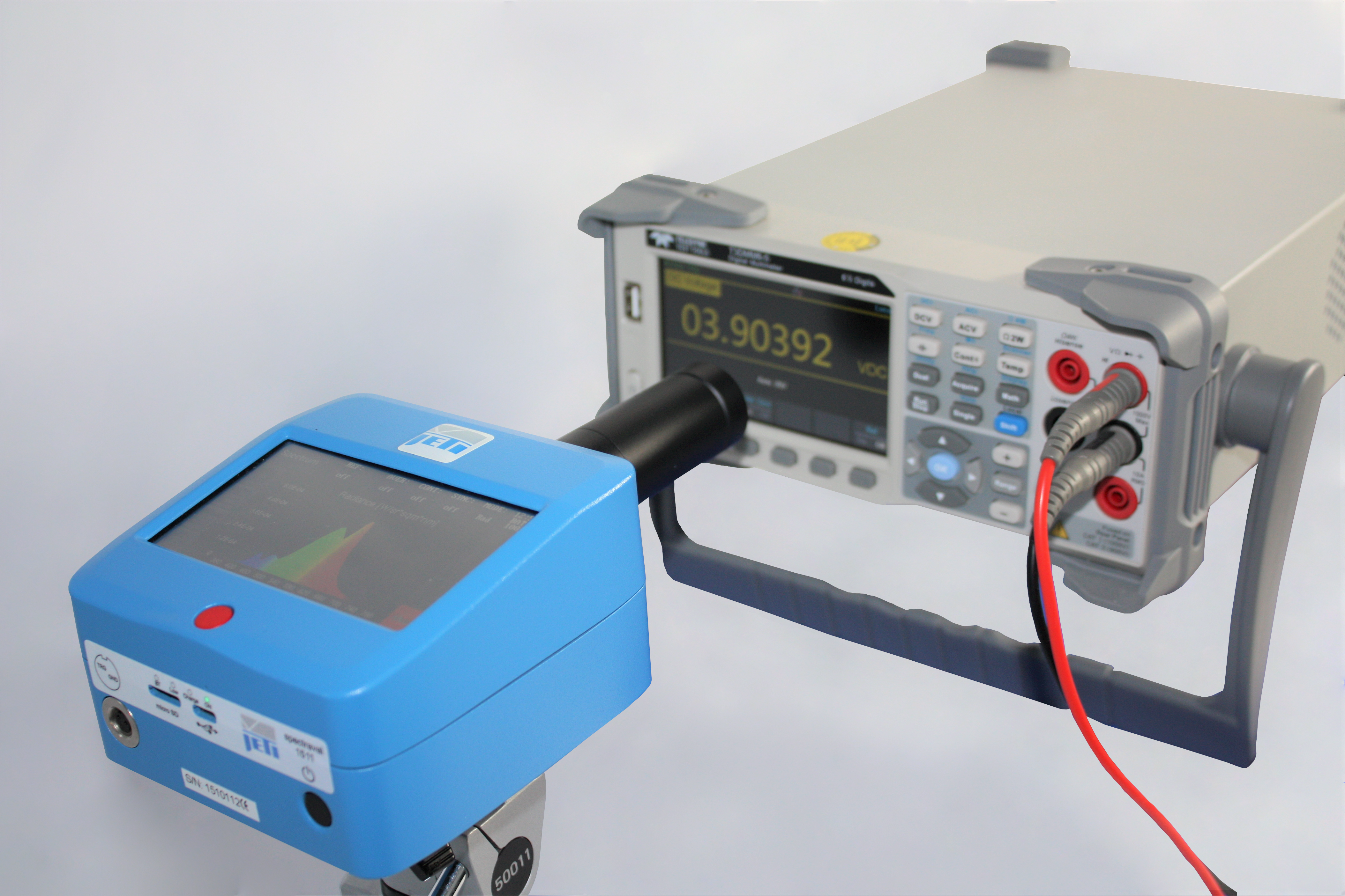 JETI offers a variety of add-on optics to achive certain different measuring geometries. There are different imaging optics: optics for specified distance ratios, optics for specified measuring angles (for any measuring distance) and customized optics.